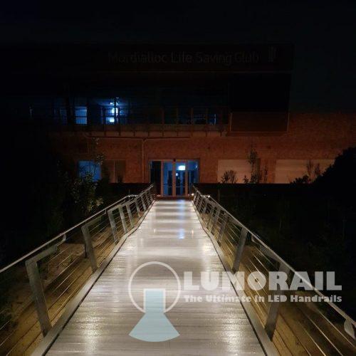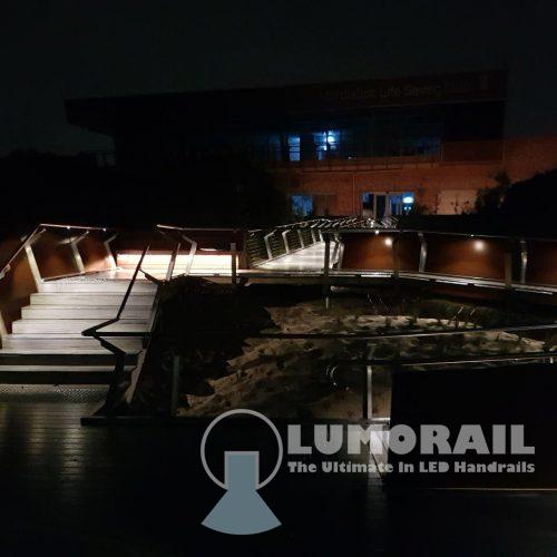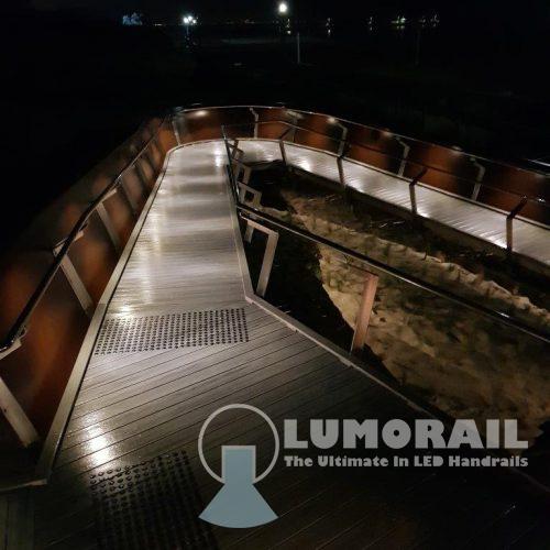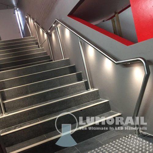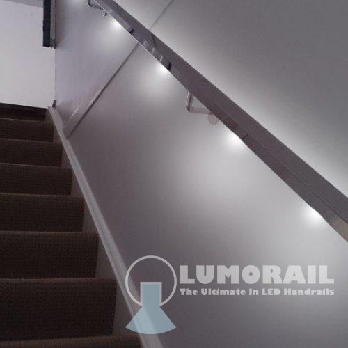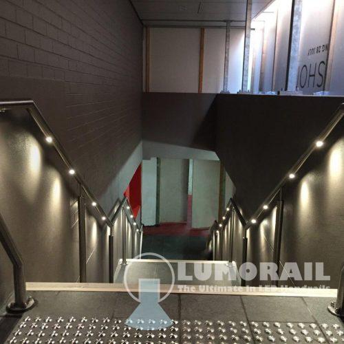 The Logan Illuminated Handrail system is by far the most versatile in the Lumorail Range. The single puck LED’s can be placed at almost any interval along straight, curved or helical handrails.